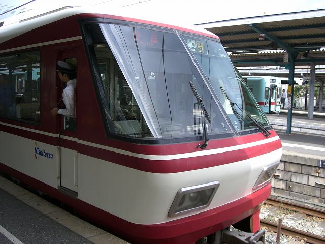 西鉄編 西鉄ってこんな色だったのね 支線の大宰府線の終点なんです。 非対称のフォルムが特徴的 ここが本線との乗換駅 帰りは特急に乗りましょう。 福岡(天神)行きとなってますね。 で、天神到着。見納めを2枚ほど 戻る